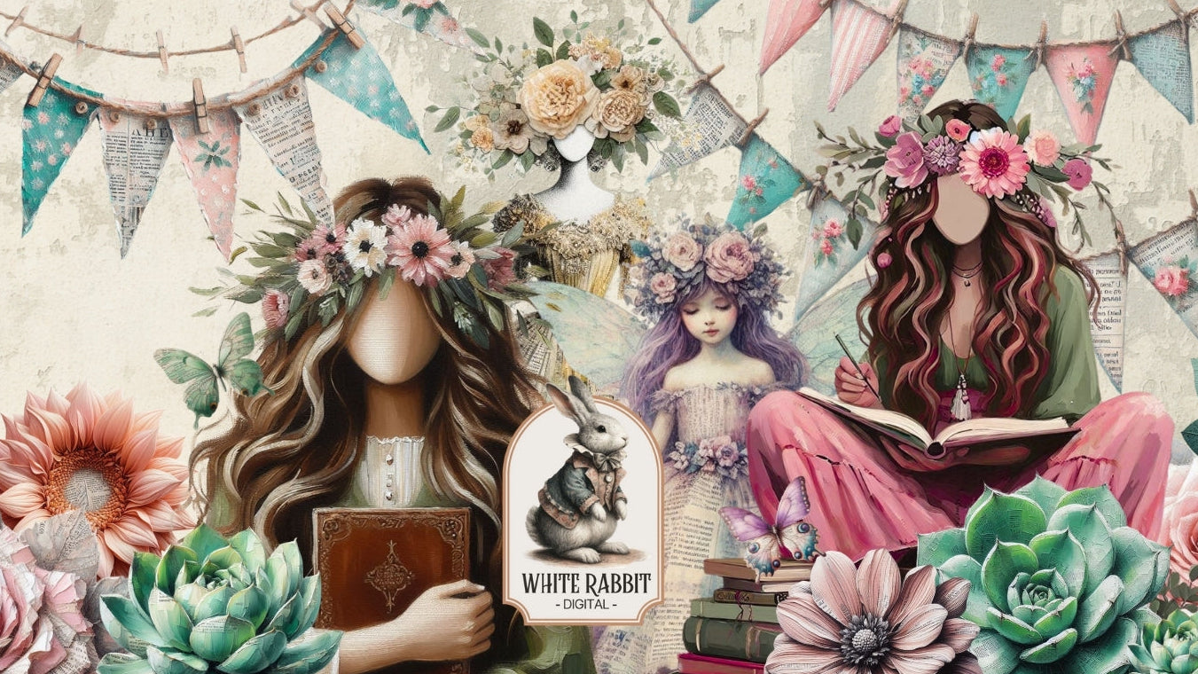 Bible Journaling Printable A4 | Proverbs 1:7 | Vintage Paper Dress & Flower Cut-Outs | (PDF)